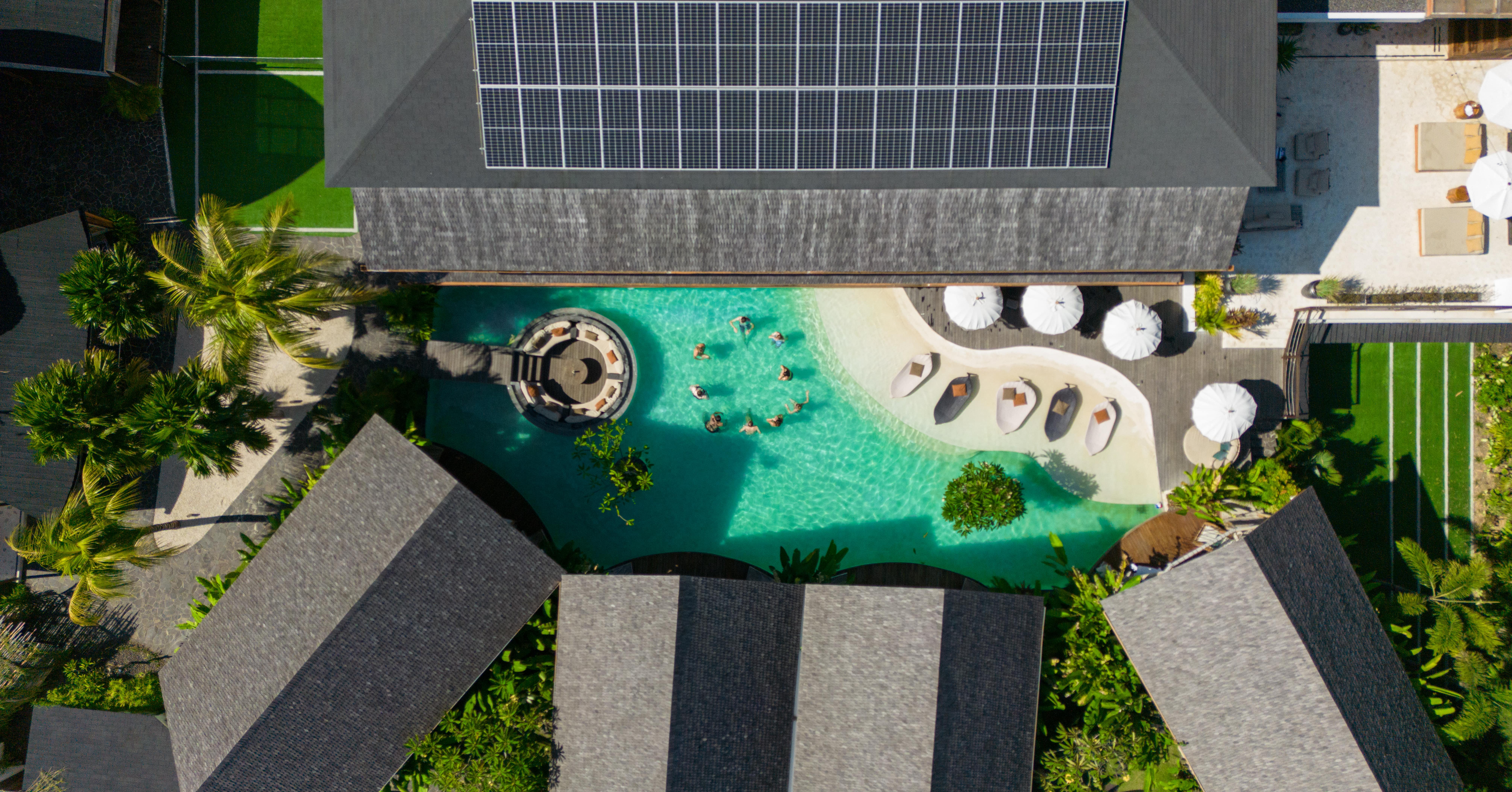 luxury villa with private chef, pool, sauna, ice baths, yoga shala, gym, and cinema.